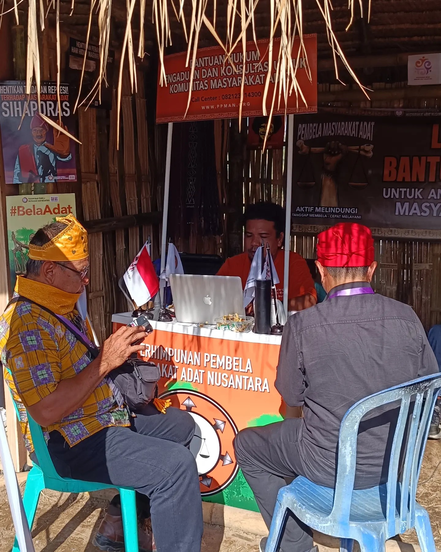 Masyarakat Adat dari delapan komunitas datangi klinik hukum yang dibuka oleh Perhimpunan Pembela Masyarakat Adat Nusantara (PPMAN) saat Musyawarah Besar (Mubes) Sekolah Adat Pesinaun di Desa Adat Komunitas Osing, Kabupaten Banyuwangi, Jawa Timur. Mubes tersebut digelar pada 12 hingga 15 Agustus 2024.